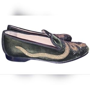 Donald And Lisa Signature Green Velevet Snake Loafers
