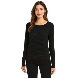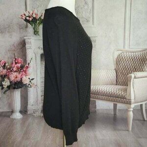 worthington Black Sparkle Pullover Scoop Neck Long Sleeves Knit Sweater Size L