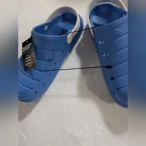 blue clogs, men's footwear, waterproof, slide sandals, casual slip-ons, comfort shoes, washable, size 12, outdoor footwear, sporty style