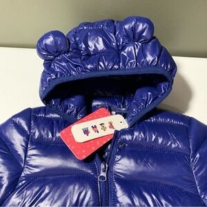 New Baby Down 3D Hooded Eared bear coat puffer 12-18 mths blue BNWT. Great down puffer coat with adorable ears. New with tags. Smoke free home.