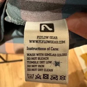 Flylow bike shirt! Worn a handful of times, great condition, ready for a new home. Blue and pink checkered fabric, collared with partial button down, 2 pockets, short sleeve. Lightweight.