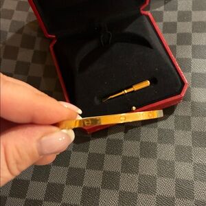 @jessp5118 Hi ! ❤️Thank you so much for your offer, however due to the nature of this item being a solid rose gold ,designer bracelet with all the included accessories and it being in such amazing condition, considering its current price of $7500 on Cartier store I would not be fair to myself (considering all the posh fees and taxes ) to accept anything less than the listed price.