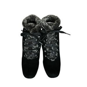 Sporto Daria Black Suede Faux Fur Lined Heeled Lace Up Winter Boots Size 8 1/2