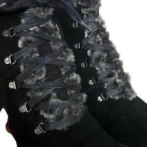 Sporto Black Suede Faux Fur Lace-Up Boots