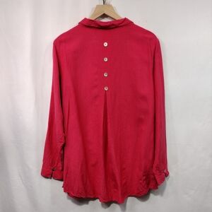 Soft Surroundings Linen Button Shirt Women XL Pink Boho Retro Lagenlook Holiday