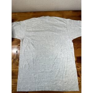 The 1991 Peck Native American Indian Vintage Single Stitch Large Tee by Fruit of the Loom is a classic piece from the 90s featuring a graphic print of a Native American Indian design in shades of gray. This regular fit T-shirt has short sleeves and is suitable for both men and women in size L. Made in the United States, this vintage shirt captures the essence of USA culture and heritage, making it a unique and timeless wardrobe staple for anyone interested in Native American themes.