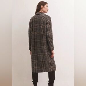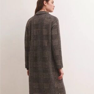 Z Supply Black and Gray Plaid Coat L