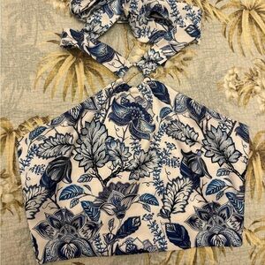 Spring is calling. This is a gorgeous cropped halter top featuring a ring detail and a smocked back for a comfortable fit. Pair with the matching Flowy Pant for the ultimate spring ensemble.