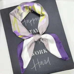 Floral Elegant Women Scarf Bandana Green Purple Vintage Silk Appaerance Top