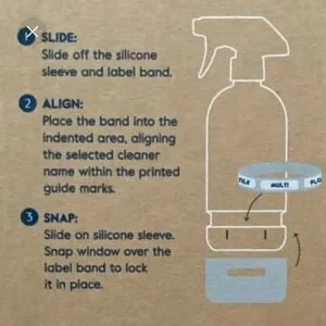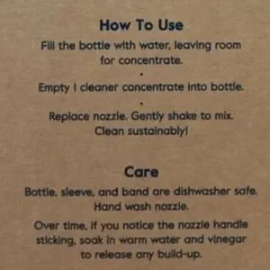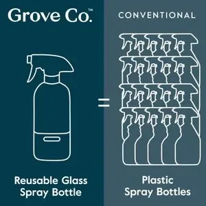 Join the Refill & Reuse Revolution with this Grove Co. Refillable Spray Bottle! Crafted from sustainable, partially recycled materials, this spray bottle is designed for use with Grove Co.™ cleaning concentrates - available in Multi-Purpose, Floor, Tub & Tile, Daily Shower, and Glass cleaners. Easily customize and organize your cleaning routine with the protective silicone sleeve with a custom Slide & Snap labeling system, and say goodbye to single-use plastic bottles cluttering your cabinets (and your trash bin). Packaged in 90% post-consumer recycled, fully recyclable paper, this bottle makes it easy Go Beyond Plastic.