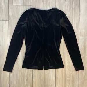 Details: Long sleeve, zip front, fitted silhouette, soft stretch velvet
