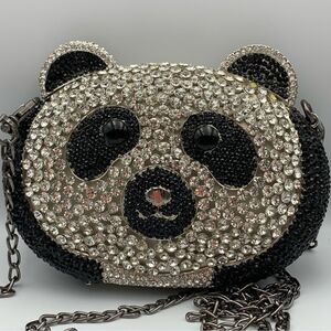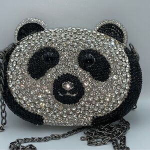 In good condition Missing a few rhinestones Swarovski crystals Panda purse Crossbody purse There are a few rhinestones missing but they can be replaced This purse is a perfect statement peice Made very well Double sided Rhinestones all over Heavy Magnetic closure