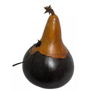 Vintage Gourd Lighted Orange & Black Pumpkin Halloween Hand Carved Folk Art Fall