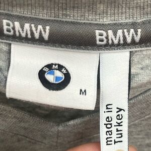 BMW Men’s Unisex Gray Cotton T-Shirt Sz Medium Raised Logo Vehicle Car Tee