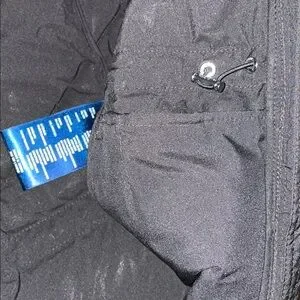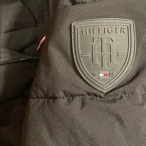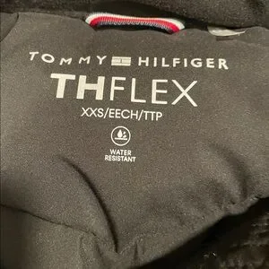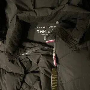 Gorgeous Sleek black jacket coat by Tommy Hilfiger. Features TH Flex design and full front zip closure. Water resistant