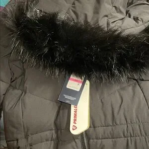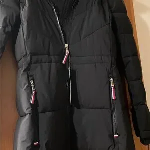 Tommy Hilfiger TH Flex Black Winter Jacket Removable Faux Fur Hood adj waist