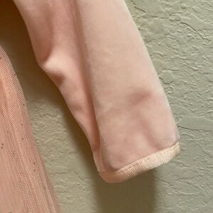 The top of the dress is pink velvet and the bottom is pink velvet with a layer of sparkly tulle!