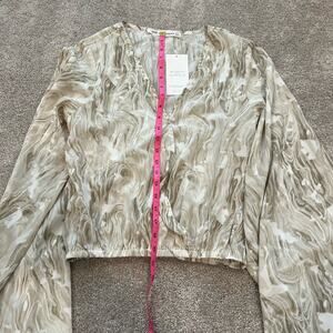 NWT 12th Tribe The Salty Blonde Wrap Blouse Tan and White Size Large