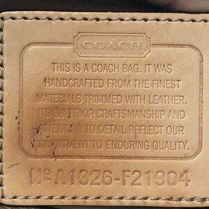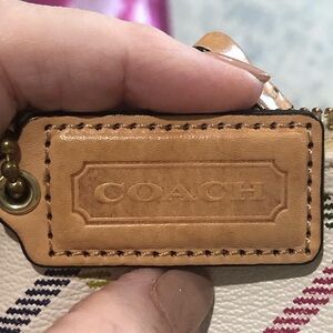 Coach Factory Peyton File bag. Multicolor diagonal tattersall plaid on cream background with tan leather trim. Front zipper pocket. Top has zipper closure. Inside has 2 slot pockets and one zipper pocket. Excellent preowned condition. Shows some signs of use inside top edges below zipper and there a some ink marks on the leather creed. Blemishes are shown in last two pictures. Measures approximately 11” tall, 12” wide and 3/4” deep. Handle drop maximum is approximately 22.5”
