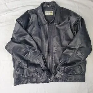 Pioneer Wear Men's Leather Bomber Jacket 100% Lamb Leather Vintage Biker Size L