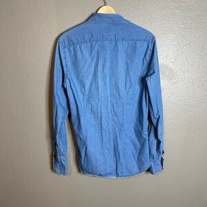 This is in good condition. Casual blue shirt by Zara. Button-down style. Ideal for everyday wear.