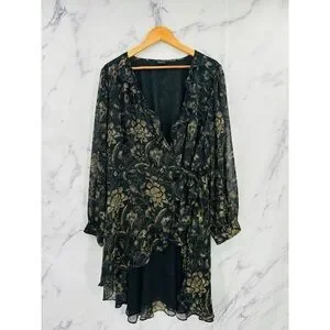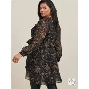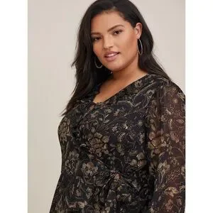 Torrid Chiffon Layered Tie Front Surplice Tunic Blouse - Floral Black
