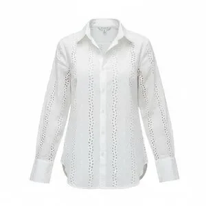 Chic white blouse with eyelet details and tie-front design. Perfect for casual outings.