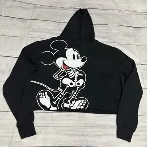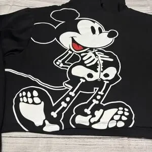 Disney Mickey Mouse Skeleton Juniors Size Large Oversized Cropped Hoodie Glows