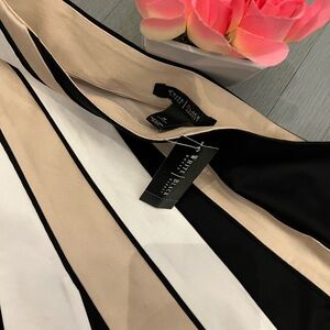 Brand new with tag, never worn. Make a bold statement with this stunning WHBM skirt featuring an eye-catching black, white, and beige swirl colorblock design. The sleek pencil silhouette flatters every curve, while the stretchy, high-quality fabric ensures a comfortable and elegant fit. Perfect for work, dinner dates, or a night out — pair it with a chic blouse or fitted top for a sophisticated look.