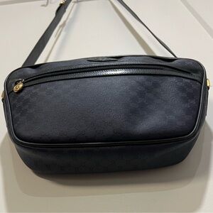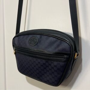 Vintage Gucci GG Navy Blue Canvas w/ leather Crossbody Bag