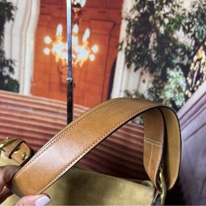 Coach Vintage Suede Tan Shoulder Bag, adjustable strap, tassel metal logo charm