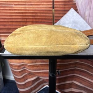 Elegant suede shoulder bag in a rich tan color. Perfect for any occasion with its stylish design and practical features.