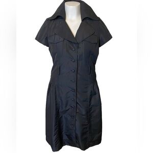 Black Dress, Fit & Flare, High Collar, Shirt dress, Professional, party, office, Teri Jon, luxury, designer dresses, sophisticated, feminine, girly, cute, vampire, goth, Emo, Cap Sleeve, Ball, Prom, Wedding, Funeral, Fall Winter,