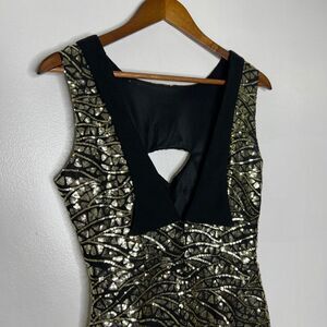 Tatyana Metallic Gold & Black Bodycon Dress Size M Retro Keyhole Glam Party