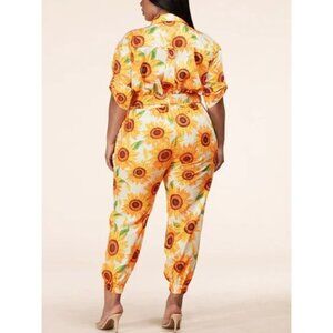 NWT Plus Size Short Sleeve Button Up Sunflowers Jumpsuit 3X