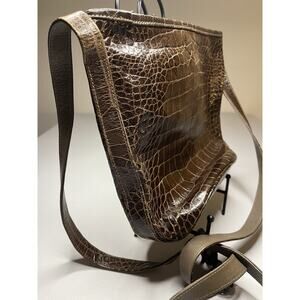 Carlos Falchi Vintage Croc Embossed Leather Purse Brown