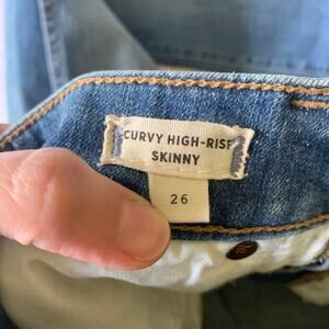 Madewell Jeans Womens 26 Curvy High Rise Drop Hem Medium Wash Distressed Blue
