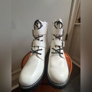 Combat Moto Boots with Buckles NWT white
