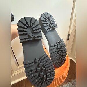 Step into a bold look with these Kohl's combat and moto boots, featuring a striking contrast of white leather uppers and chunky black rubber soles. The boots boast decorative straps with metallic buckle details and studded accents, offering both style and durability. With a mid-calf height and padded collar, they ensure comfort and a secure fit for any adventure.