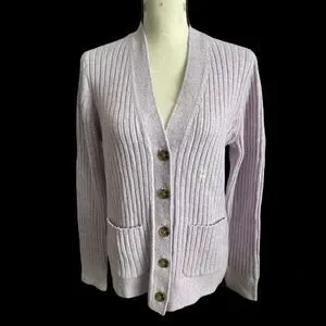 LOFT Outlet Cardigan Front Pockets V-neck Lavender Medium. Very pretty. Ribbed cuffs and waistband, very soft.