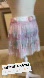 New! Shimmer and shine in this dazzling leather fringe Mardi Gras Queen of Sparkles mini skort, perfect for a night out or cocktail event. Adorned with rhinestones and playful layers of fringe, this skirt captures the light beautifully, ensuring you stand out in any crowd. White lined shorts beneath and belt included. Its flirty design and modern flair make it a must-have for your party wardrobe. Very boho! Rhinestones are purple, green, and gold but this skort can be worn for any event. The light pastel colors of the fabric are so pretty! 🤩