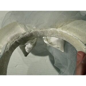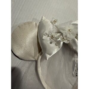 Great condition, a few spots of discolor on the inside of the bow (very light). Celebrate your special day with a touch of Disney magic. This whimsical Minnie Mouse ear headband adds an enchanting touch to any bridal ensemble, cosplay, or costume. Dazzling faux pearls and satin bows adorn the ears, while a delicate tulle veil creates a romantic and ethereal effect. Perfect for a Disney-themed wedding, bridal shower, or a fun costume party.