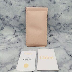 Style Tag: Luxury, Designer, Sunglasses Case, Eyeglass Case, Chloé, France, Blush Pink, Suede Leather, Card Holder, Authentic Card, Fashion Accessory, Eyewear Protection, Travel Essentials