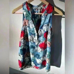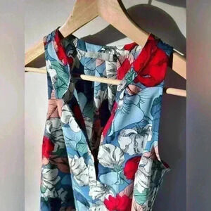 Dalia Women’s Colourful Red Blue Floral Sleeveless Blouse Art to Wear Small