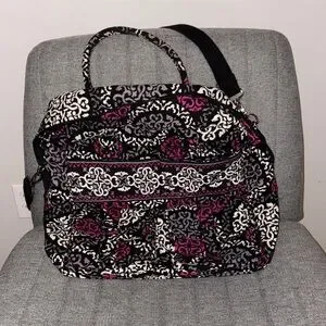 Vera Bradley Black and Purple Travel Duffel Bag with Crossbody and Handles