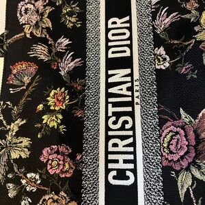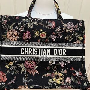 Dior book tote fully embroidered adorned with Christian Dior signature on front.
