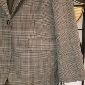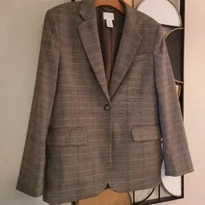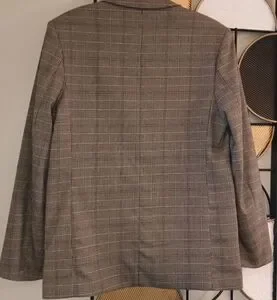 Tan/Brown Checkered Loose Fit Women's Blazer with single button and faux front pockets