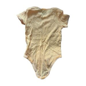 Bright blue zip-up hoodie. Soft orange striped bodysuit. Comfortable black pants.