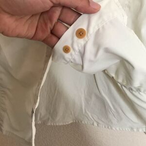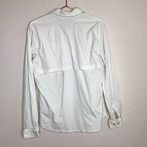 Perfect camping shirt! Built for the outdoors but can also look great as a casual top. Size large but fits more like a medium. Front has a pocket on the chest. No flaws.
