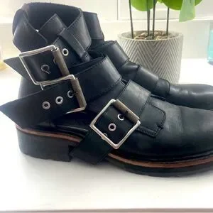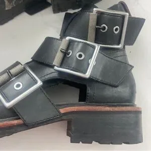 RAG & BONE Boot Buckle Ankle Moto Combat Booties Sandal Leather Black Red